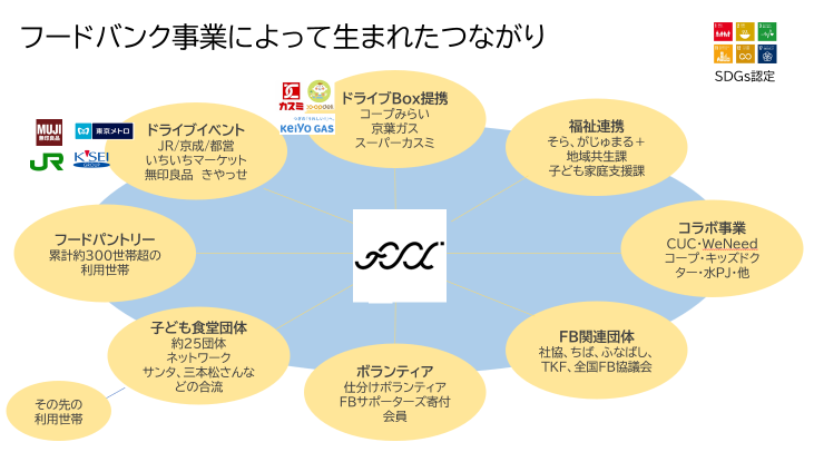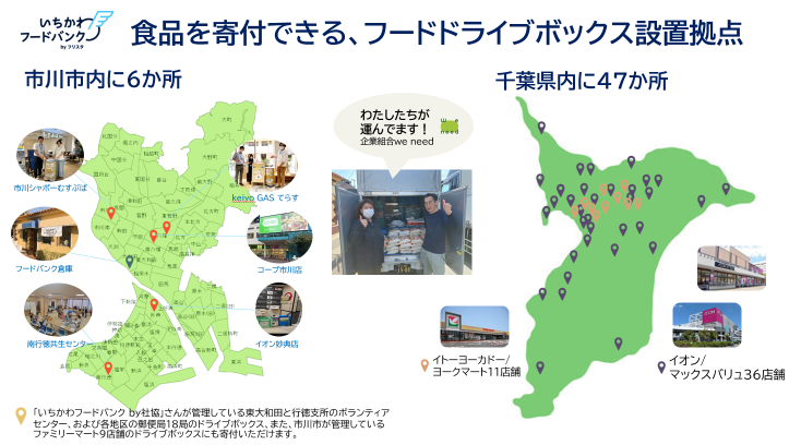 今では、企業単位での提携も進み、千葉県内の他市の店舗に置かれたボックスに寄贈された食品も、私たちの元に届き、それらを管理、仕分けでして、市川市内で有効活用しています。