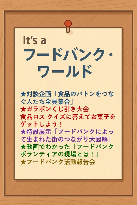 It’s a フードバンク・ワールド:フードバンク事業に関する、ちょっと他では見られない発表です。あなたの中のフードバンクの概念がくつがえされるかも?!