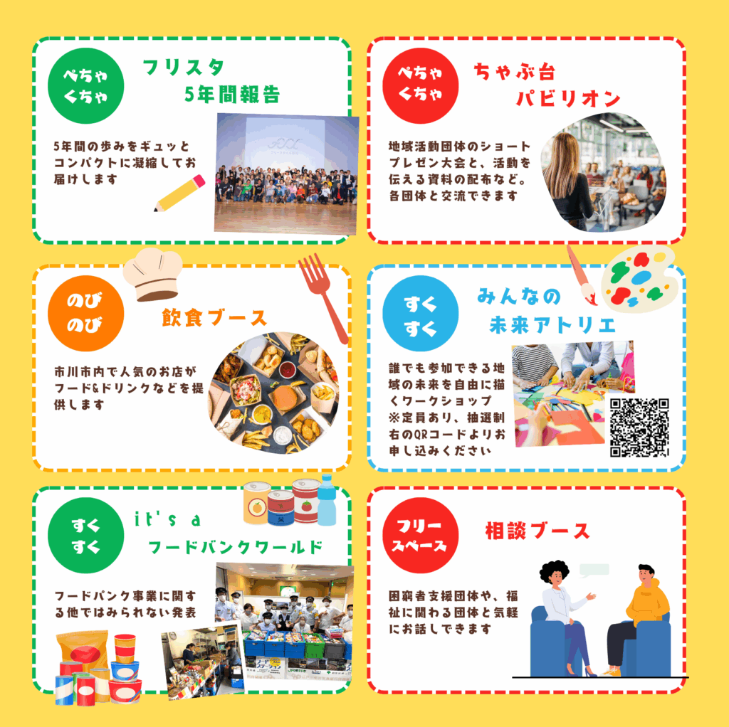 そこで、これまで一緒に市川市で地域に対する想いを持って活動している仲間たちを招いて、みなさんと語り合うイベント「フリスタ万博」を企画しました。
